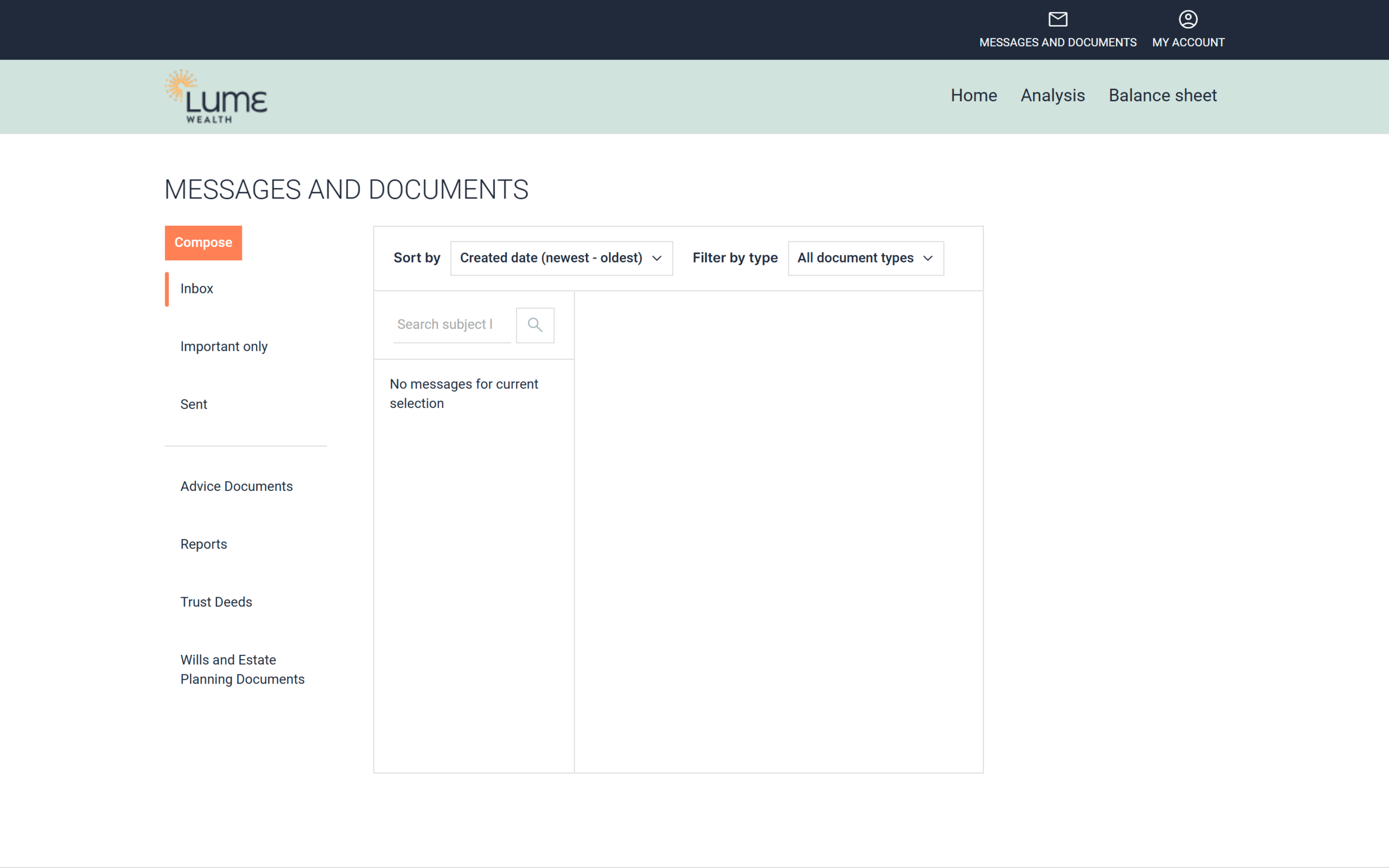 - Click MESSAGES AND DOCUMENTS in the top right of the screen.