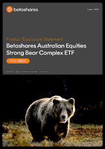 This Product Disclosure Statement dated 3 April 2025 outlines the key features of the Betashares Australian Equities Strong Bear Complex ETF, including its investment objective, leveraged inverse exposure to the Australian sharemarket, use of derivatives, fees and costs, risks, and taxation considerations.