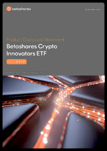 This Product Disclosure Statement outlines the key features of the Betashares Crypto Innovators ETF, including its investment objective, exposure to global companies involved in cryptocurrency and digital asset infrastructure, index methodology, fees and costs, risks (including market volatility and regulatory risk), and taxation considerations.