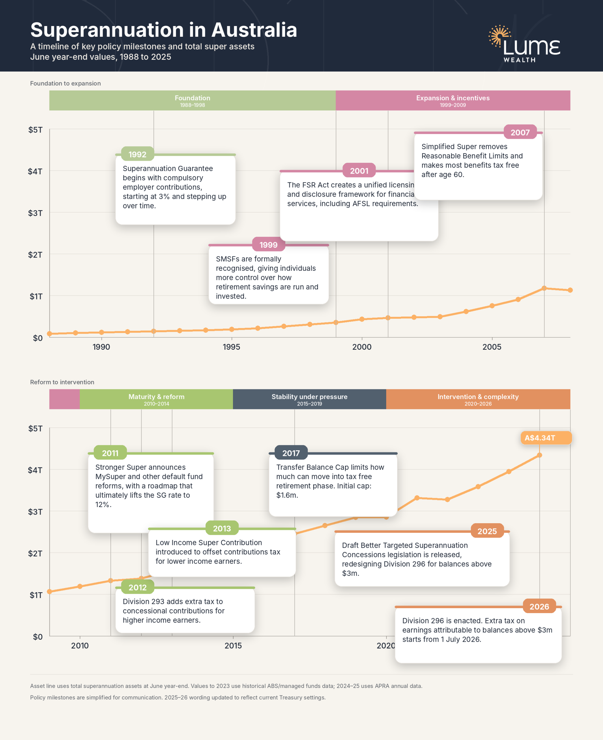 Further reading: Superannuation in Australia: a timeline via APRA